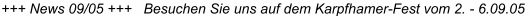+++ News 09/06 +++ Zweiter Bio-Energie am 4. September auf dem Karphamer Fest war von großer Interesse. Die Besucher konnten sich über Neuheiten BIOKA und Vorträge zum Thema Einsatz Bio Ethanol und Holzvergasung Pyrator informieren. Weitere Fotos siehe Link: karpfhamer-fest.de (Fotogalerie - Montag)